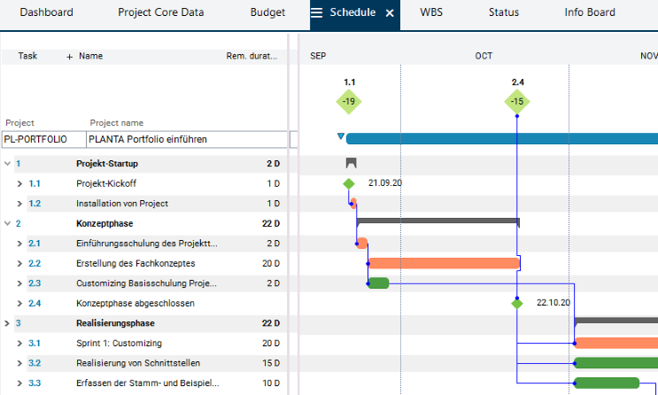 • Click on the PL-PORTFOLIO project in the Date scale area and move it back by three months via Drag&Drop.