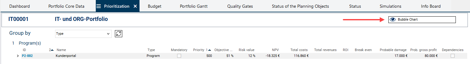 On the basis of this information, she wants to decide which proposals and ideas are profitable and can be realized as projects and which ones can possibly be removed from the portfolio or be set to inactive temporarily.