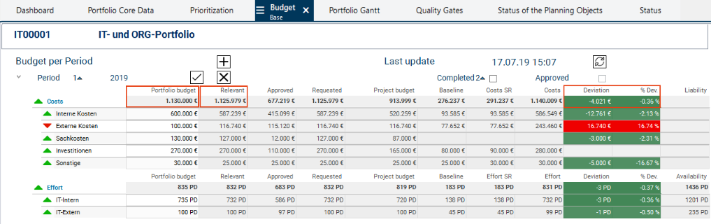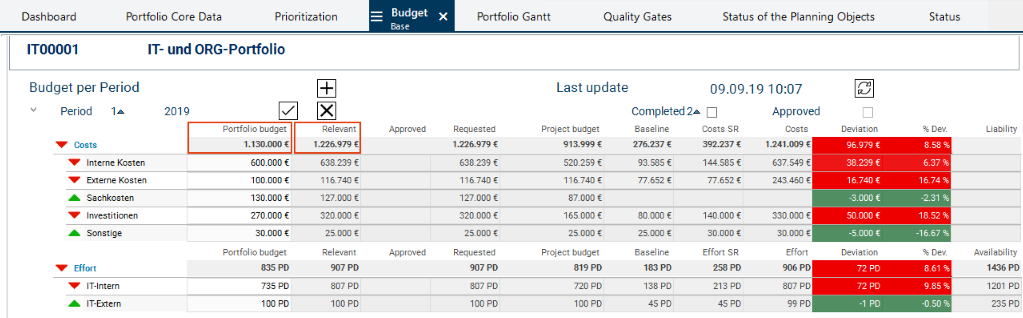 By the color display of the planning objects by code, the portfolio manager can immediately tell which planning objects cause the Overload. It is primarily the new proposal the code color of which is "orange".