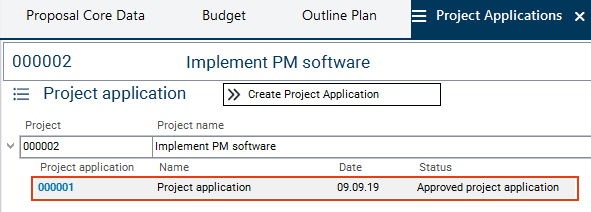 The approval has turned the Implement PM software proposal into a project. This change is done automatically in line with the rules stored in the process model.
