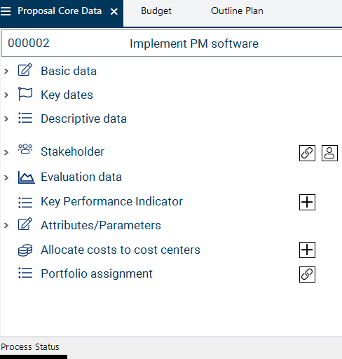 As a result, the main persons responsible are assigned to the proposal, i.e. the persons who are supposed to elaborate it and turn it into a project. Stakeholders who do not yet play any role in this phase are added when the proposal is approved and turned into a project.