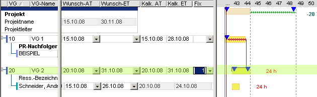 Schedule (project/proposal) in the Entire Schedule module variant (can be displayed in further module variants)