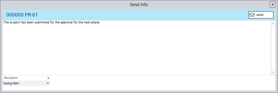 - After submission, the Send Info module is opened and an info can be sent.