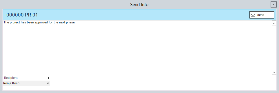 - Ronja Koch (R8) is automatically set as recipient for project PR01.
