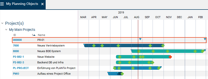 The My Planning Objects module is opened. It provides an overview of all planning objects of the project manager.