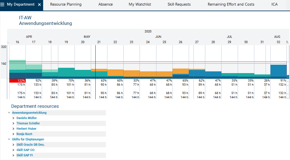 If in project planning it remains unclear which employees can be assigned as resources, PLANTA project also provides an option to plan based on skills. The department manager can reallocate the planning from skills to individual resources. For further information on this, please see here.