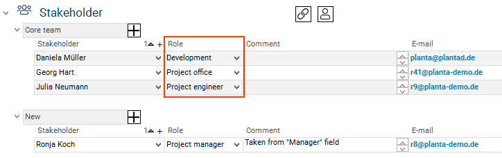Click on the Assign stakeholder button in the Stakeholder area in the Project Core Data module.
