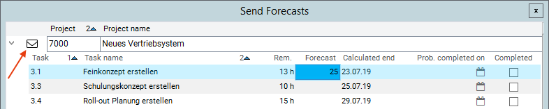 The project manager of the project is automatically entered as recipient (here: Ronja Koch).