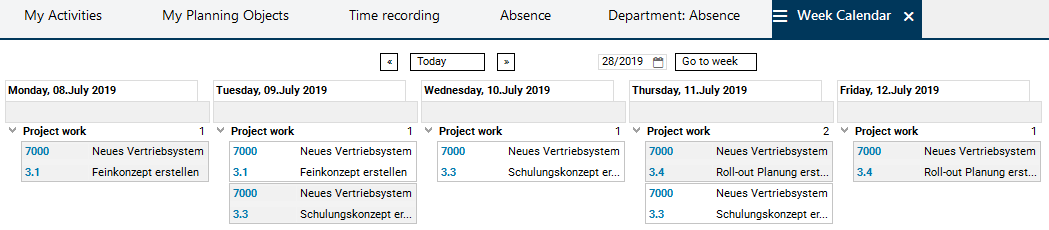 In the left window, all projects and - if you unfold them - all tasks are displayed for which the employee is scheduled.