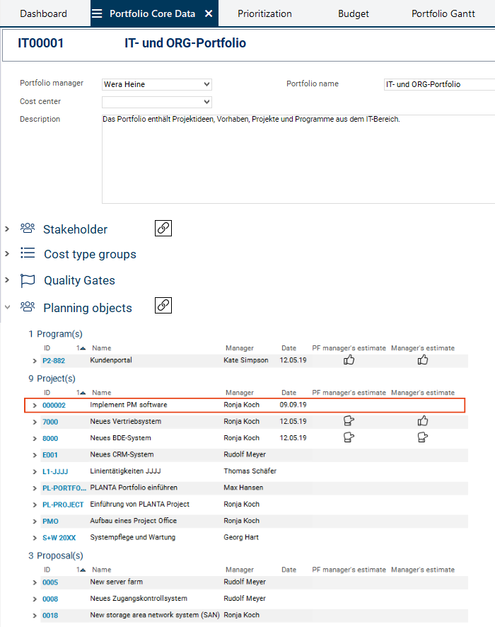 On the basis of this information, she wants to decide which proposals and ideas are profitable and can be realized as projects and which ones can possibly be removed from the portfolio or be set to inactive temporarily.