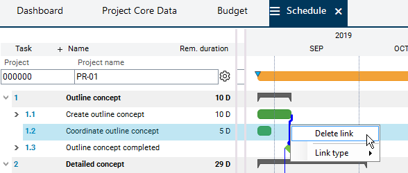 The Preliminary study task can be deleted. The project manager therefore deletes all tasks that relate to the Preliminary study.