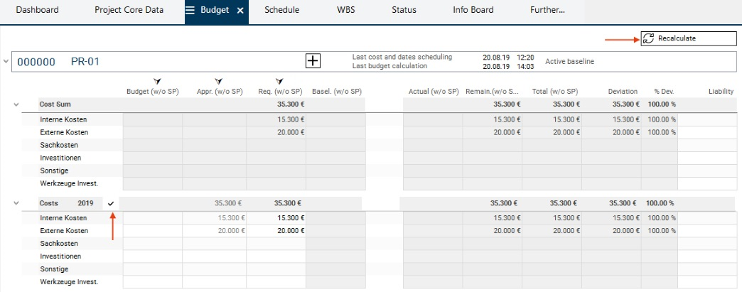 Calculate schedule button in the toolbar.Switch to the Budget module.
