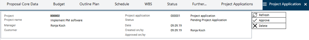 The approval has turned the Implement PM software proposal into a project. This change is done automatically in line with the rules stored in the process model.