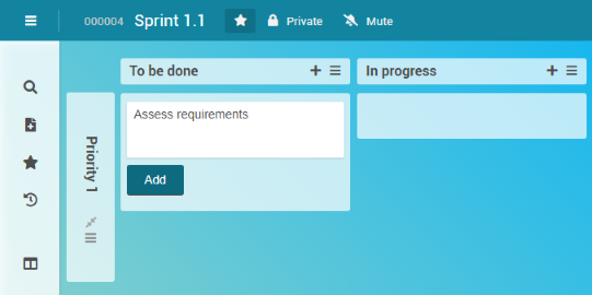 Click on the + symbol next to the To be done list name. Alternatively, you can click on the + Add card button which is displayed in the lower area of the list as soon as the mouse is moved over it.
