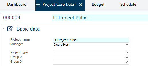 Georg Hart is automatically entered in the Manager field. Do not change the entry, for he is to be the responsible project manager of the new project.