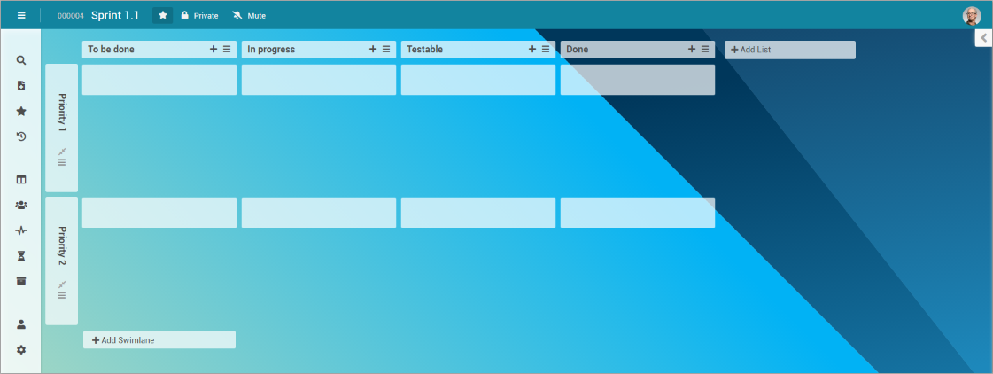 You can create an unlimited number of cards per board which allows for very detailed planning. For the sake of clarity, cards can be aligned via lists (vertically) and swimlanes (horizontally).