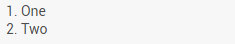| List | * One * Two or - One - Two (Add a space to indicate a subitem.) or 1. One 2. Two |