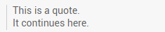 | Quote | > This is a quote. > It continues here. | ![]() |