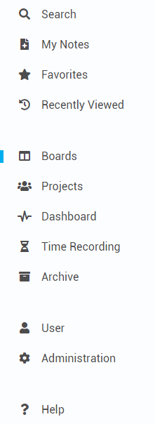- Via the menu item Search, you can search for boards, projects or cards.