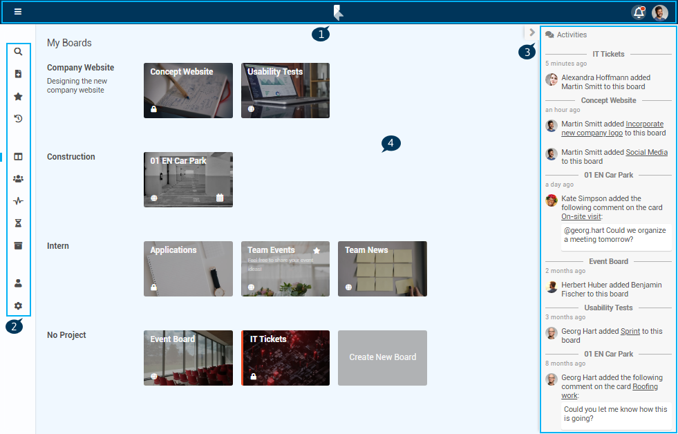 A Sidebar is displayed in the Boards panel and on the individual boards.
