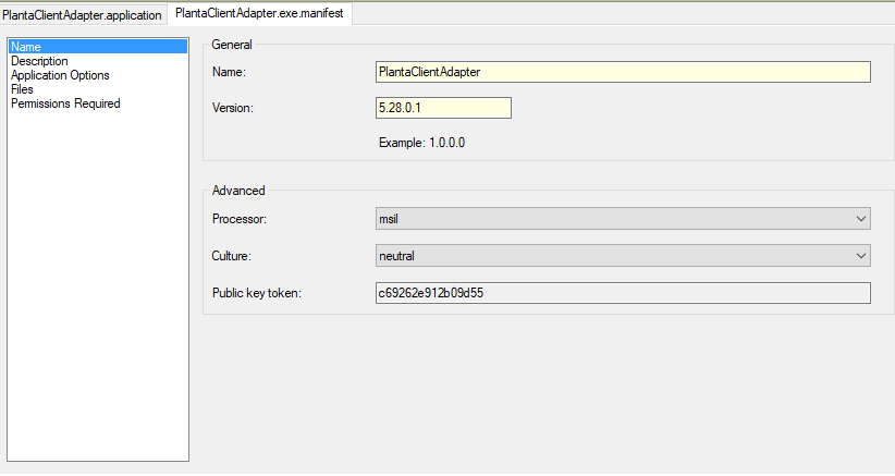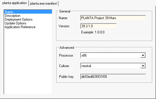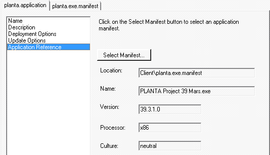 For working with these manifests, PLANTA uses the MageUI graphic tool (part of the Windows SDK). An example for both manifests is included in the delivery of the ClickOnce client. They must be adjusted for their own environment.